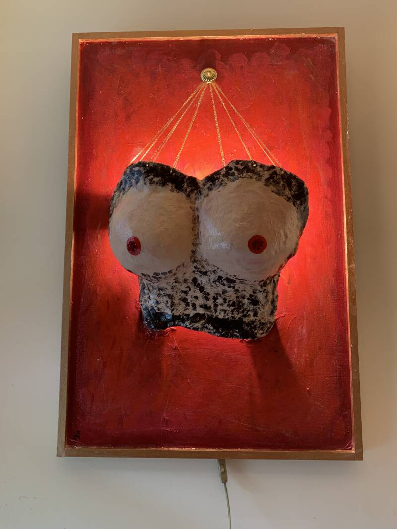 "In mijn eigen atelier creëer ik bijvoorbeeld vrouwelijke schoonheden in extreme vormen die daarna in de oven gebakken en geglazuurd worden. Daarnaast maak ik ook van keramiek koeien, kippen, vazen en lampen. Deze beelden zijn geschikt voor binnen en buiten en ik exposeer ze in mijn eigen tuin."