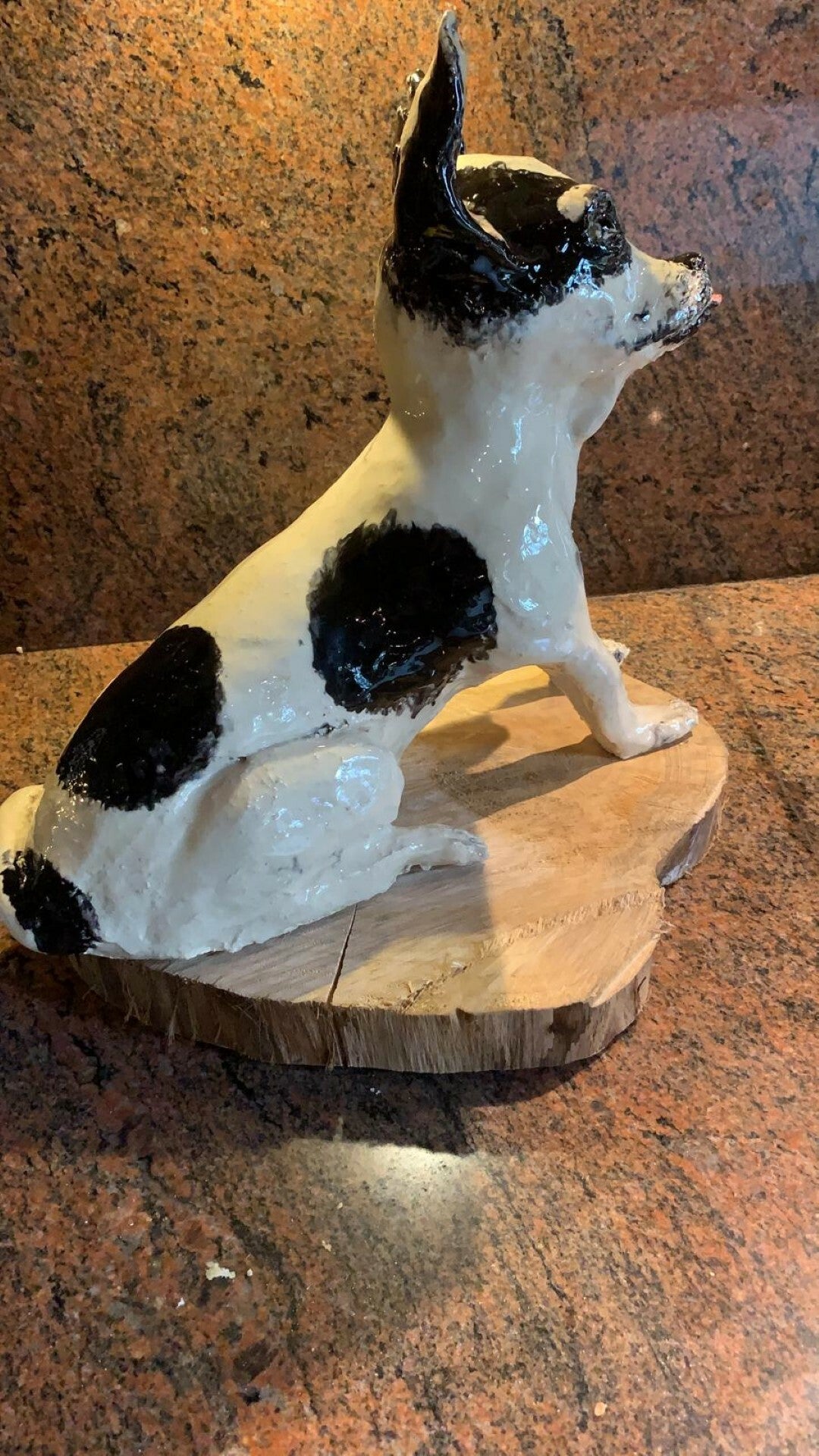 Chihuahua hondje in keramiek geglazuurd wit/zwart